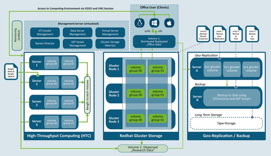 • Bereitstellung der Material- und Forschungsdaten mit Hilfe von Open-Source Software-defined-Storage (Gluster-Storage)